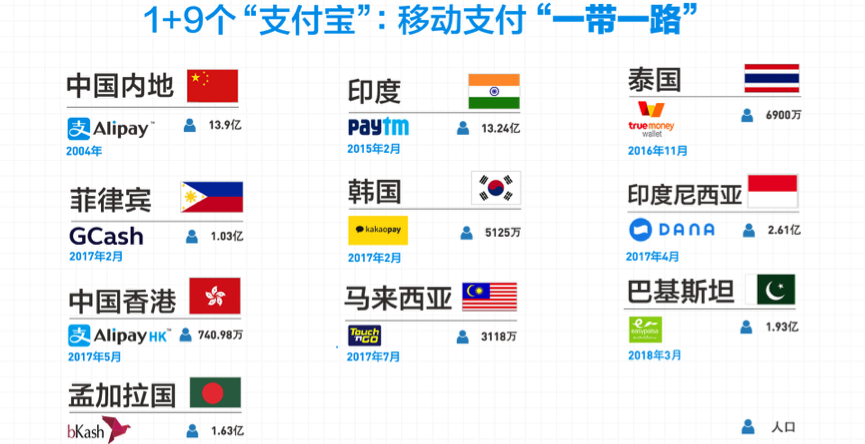 据介绍,三年前,蚂蚁金服开始筹划技术出海,通过在全球国家和地区寻找本地合作伙伴,打造符合本地国情版的“支付宝”。程立在会上透露,截止目前,在印度、泰国、韩国、菲律宾以及印尼、中国香港和马来西亚等地区,支付宝加全球9个本地数字钱包,已经服务全球超过8.7亿人,打造出一条移动支付版的“一带一路”。