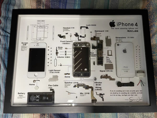 我们手机装裱师的工作是把一步旧手机拆分成多个零件,然后准确的将拆分后的零件固定到一张带有各配件名称的图内,然后再用相框将这个带有零件的图进行装裱,形成一幅有科技感的艺术品。