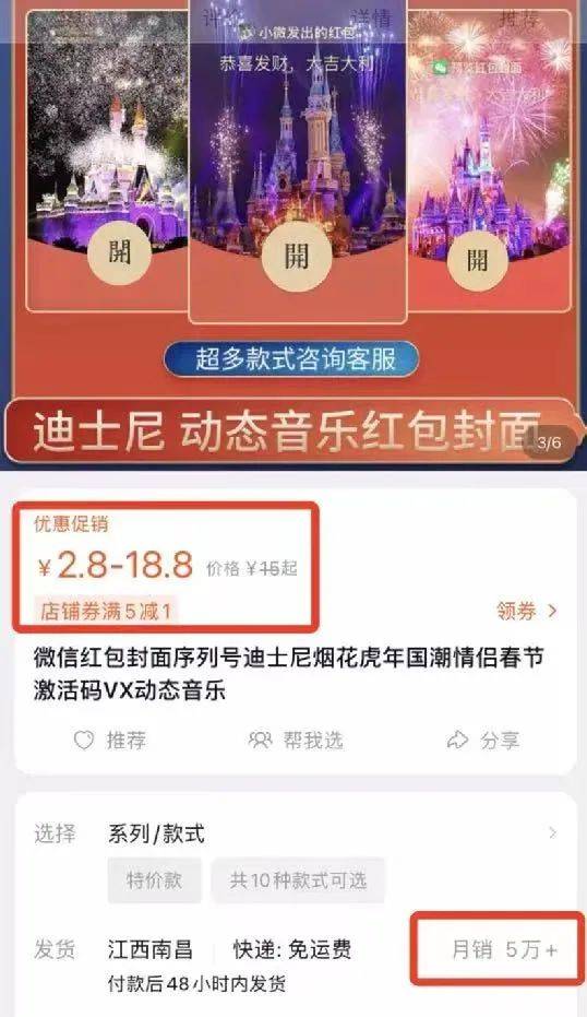 此外,还有众多商家销量破万,不少插画师、内容设计师等创作的红包封面也非常受欢迎,销售数量十分可观。