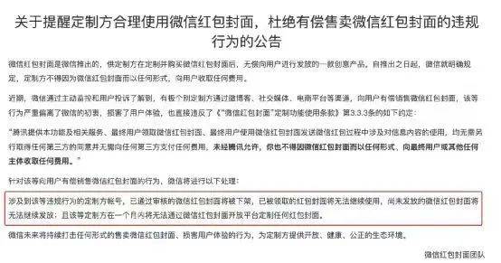 针对该等向用户有偿销售微信红包封面的行为,微信将进行以下处理: