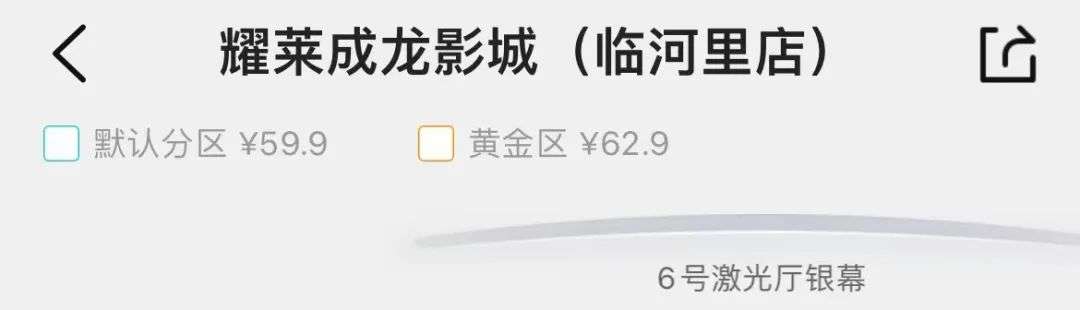 以2月6日晚场的《长津湖之水门桥》为例,位于北京一家耀莱成龙影城发现,购票分为默认区域和黄金区,价格相差3元;另一家万达影城的优选区则比普通区贵出了5元。春节档电影看出了巨星演唱会的感觉。