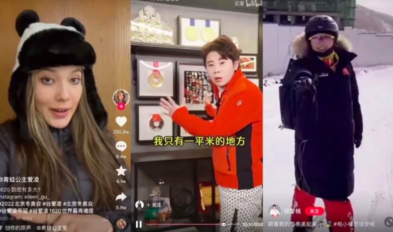 像小红书、抖音、B站等还没有像此次冬奥一样全面进攻体育板块,没有拿到版权的他们几乎是依托着固有的社区氛围,在视频和图文二创方面主要是以赛场之外的花絮以及运动员过往的比赛资料为基础进行二创混剪,尽可能地发掘流量。