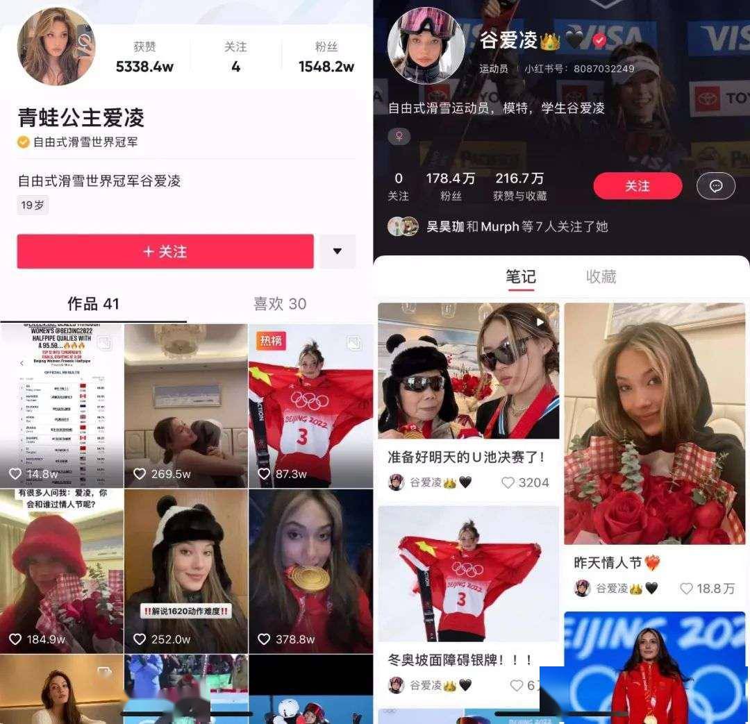虽然成为小红书的代言人,但谷爱凌的社交习惯却并不能被轻易改变。从2022年年初至16日,她在抖音更新了21条视频,在微博更新了9条非商务的生活分享。但在小红书上,她却只发布了10条笔记。