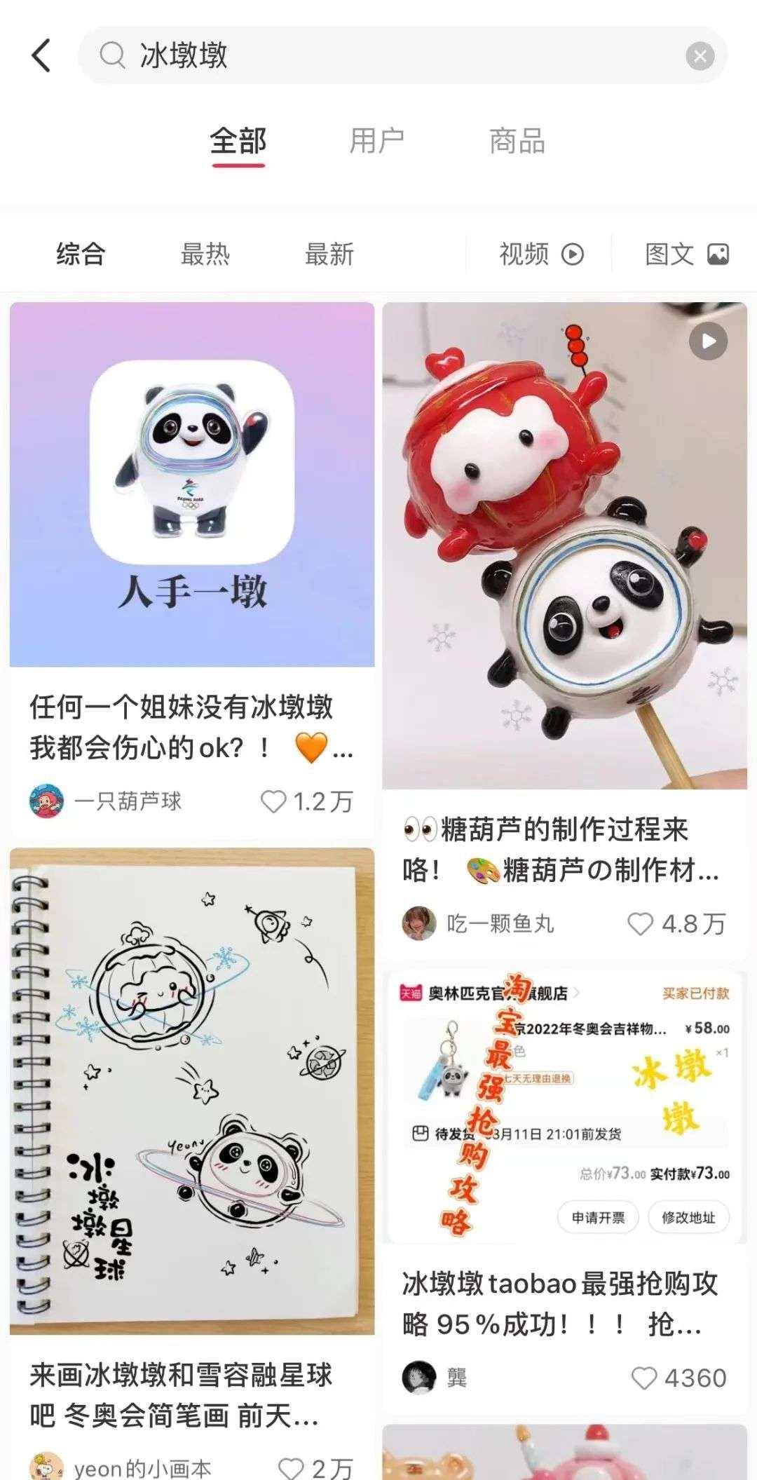 在“一墩难求”的局势下,冰墩墩是毫无疑问的顶流。小红书里,光包含“冰墩墩”的笔记,就有超过30万篇。