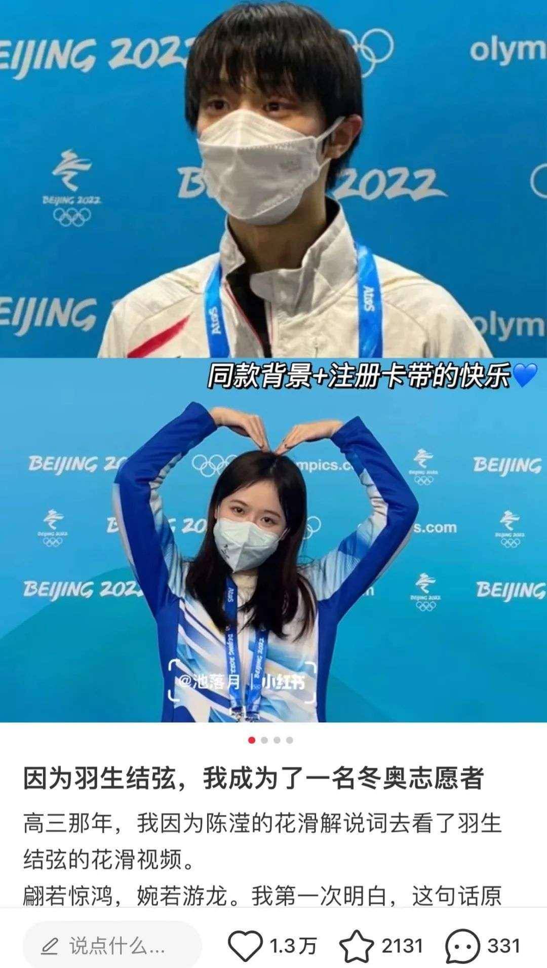 她在小红书晒出的这段经历,被超过1万人点赞。虽然最终她没有被分派在花滑场馆,也没有见到羽生,但欣喜地告诉 娱刺儿,自己实现了冰墩墩自由。