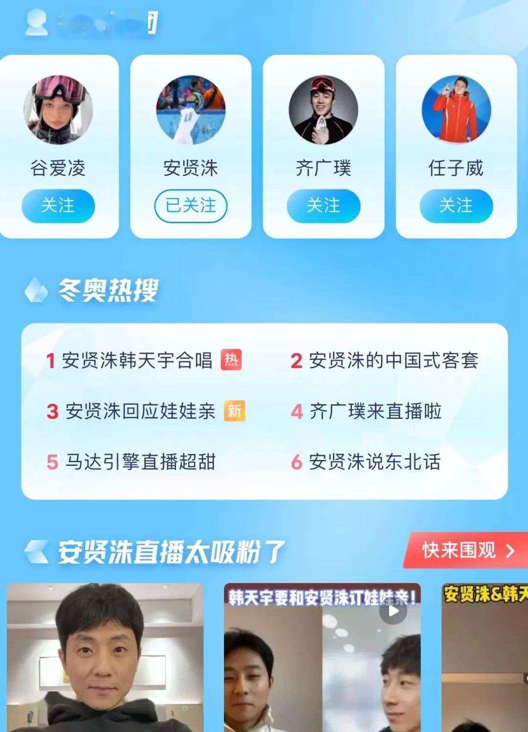 2月10日,短道速滑队队员韩天宇和林孝埈在小红书连麦直播后,林孝埈说中国女生比韩国女生好看,韩天宇“狂飙”韩语和东北话教学等名场面,以图文、视频的方式火了起来。#林孝埈直播#、#林孝埈说等我回来#等话题也迅速登上微博热搜。