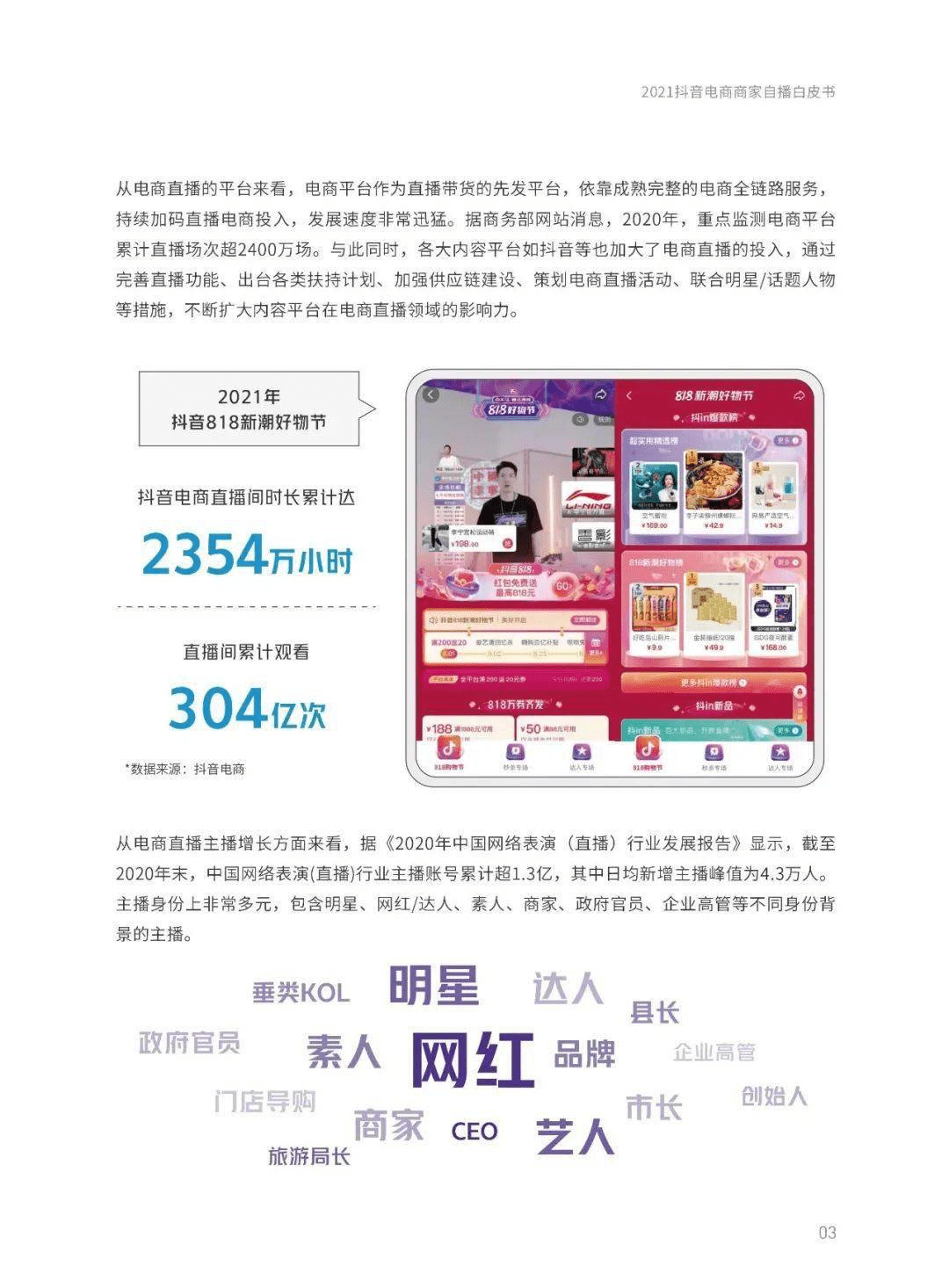 吴劲草在电话会议上也认为,抖音直播几乎不存在超头部主播,大范围的品牌自播也顺势成为了抖音的一大优势。