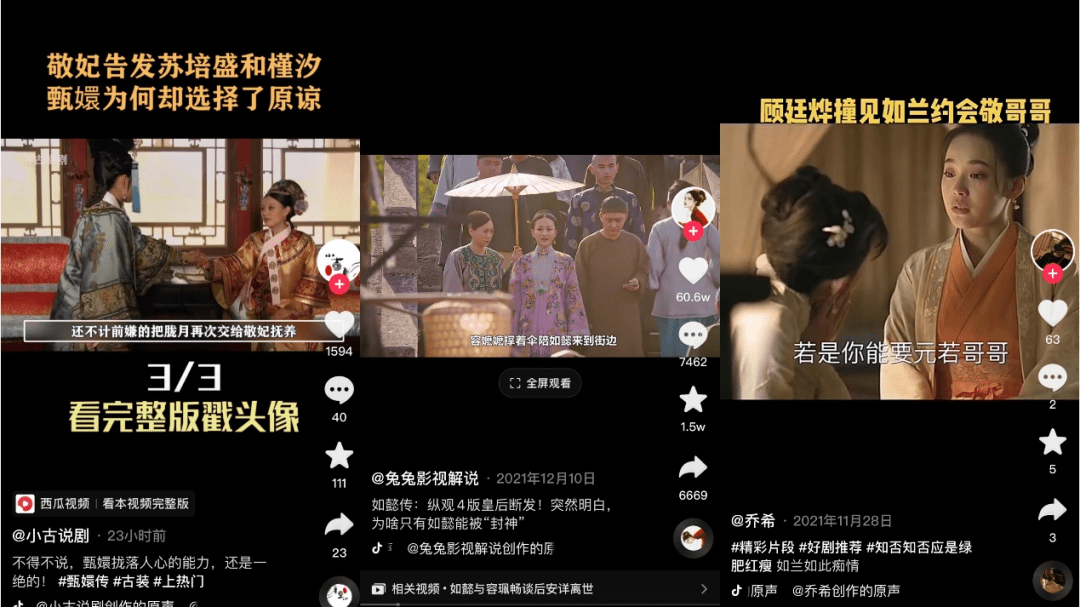 同时,字母榜曾在文章中分析,“去年整个长视频平台有超过2000部重点(S+或者S级)作品被盗版,侵权短视频数量在100多万以上。比如抖音上有个专门剪辑《甄嬛传》的账号,已经发布了232集内容,每个片段5-6分钟。”