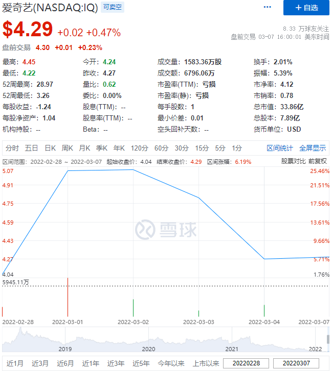 时间回到当下,虽然此番有百度的巨额资金注入,财报也显露出了向好趋势,财报发布的当天,股价由4.04美元/股上涨至5.03美元/股,龚宇和他的爱奇艺也时隔四年再次喊出了盈利口号,一切都似乎在向好的方向进展。