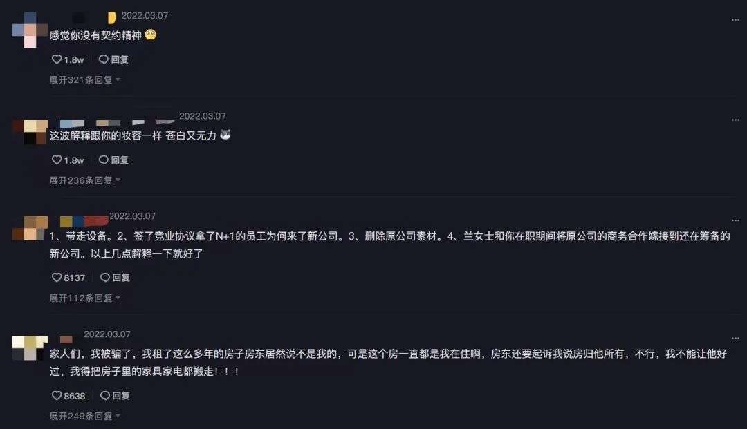 与此前MCN达人之争,网民必站达人的情绪相反的是,这一次,大多数人都对MCN抱有更大的同情,微博评论区下,不乏有“白眼狼”“过河拆桥”“忘恩负义”等词语直指“浪胃仙”本人。