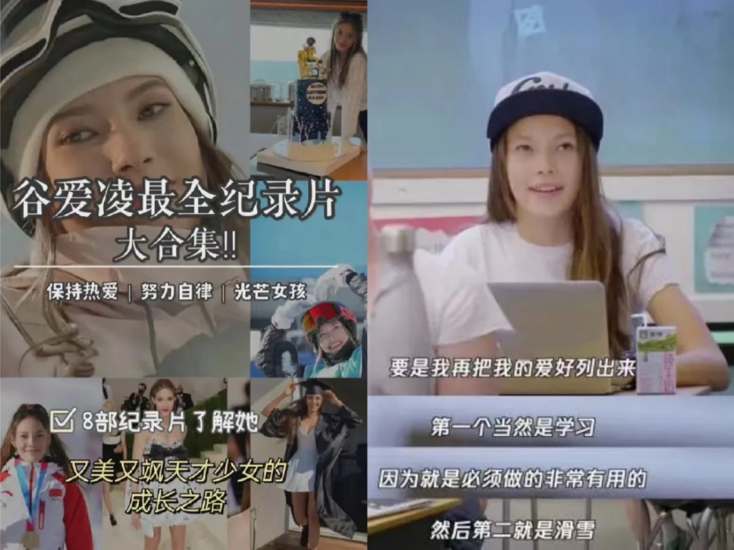 到了2019年,谷爱凌转中国籍,巍美中国的人设打造又变成了“爽文女主”+“天才少女”,与以往国内主流的“吃苦耐劳”运动员形象大相径庭。