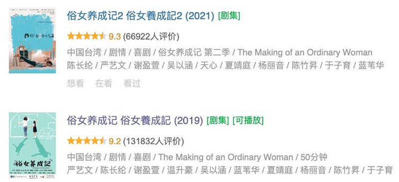 从口碑上看,两部《俗女养成记》在豆瓣上的评分均超过9分,第一部的打分人数超过13万。好剧向来不是活在热搜里的金句和价值观的直白输出,而是更落地、更自洽、更丰满的人物和故事本身。