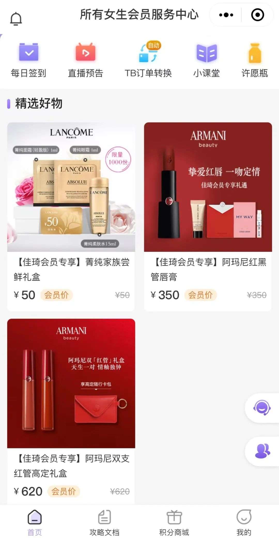 从“所有女生”的购物功能来看,尚处于初步探索阶段,之前上线的产品仅有三款,与兰蔻、阿玛尼官方小程序的售价一样,没有显著的价格优势,对粉丝的吸引力有限。后续会朝独立电商平台发展,还是仅作为淘宝直播的一种补充,还很难预料。