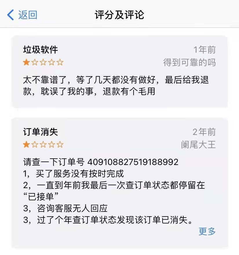 由于华为等安卓软件市场上已经无法搜索到这款软件,锌财经只能在Apple store与官网找到它的正规下载渠道。同时在Apple store中发现,WIshR星享目前已经属于基本停运状态,上一次版本更新停留在一年前;总计共30条评论中的最近两条,也还都是差评。