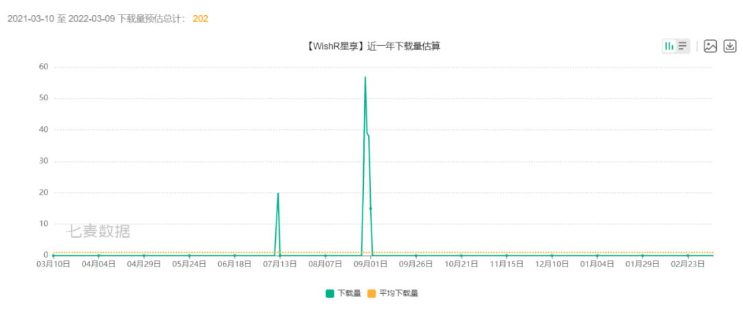 短暂的猎奇热度过后,已经被大众所遗忘。据七麦数据显示,WishR星享在过去一年里的下载量,预估总计不过202次。