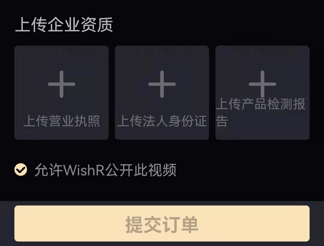 据了解,WishR星享App中虽然分为商业版与个人版,其中商业版下单需要提供各种资质材料。