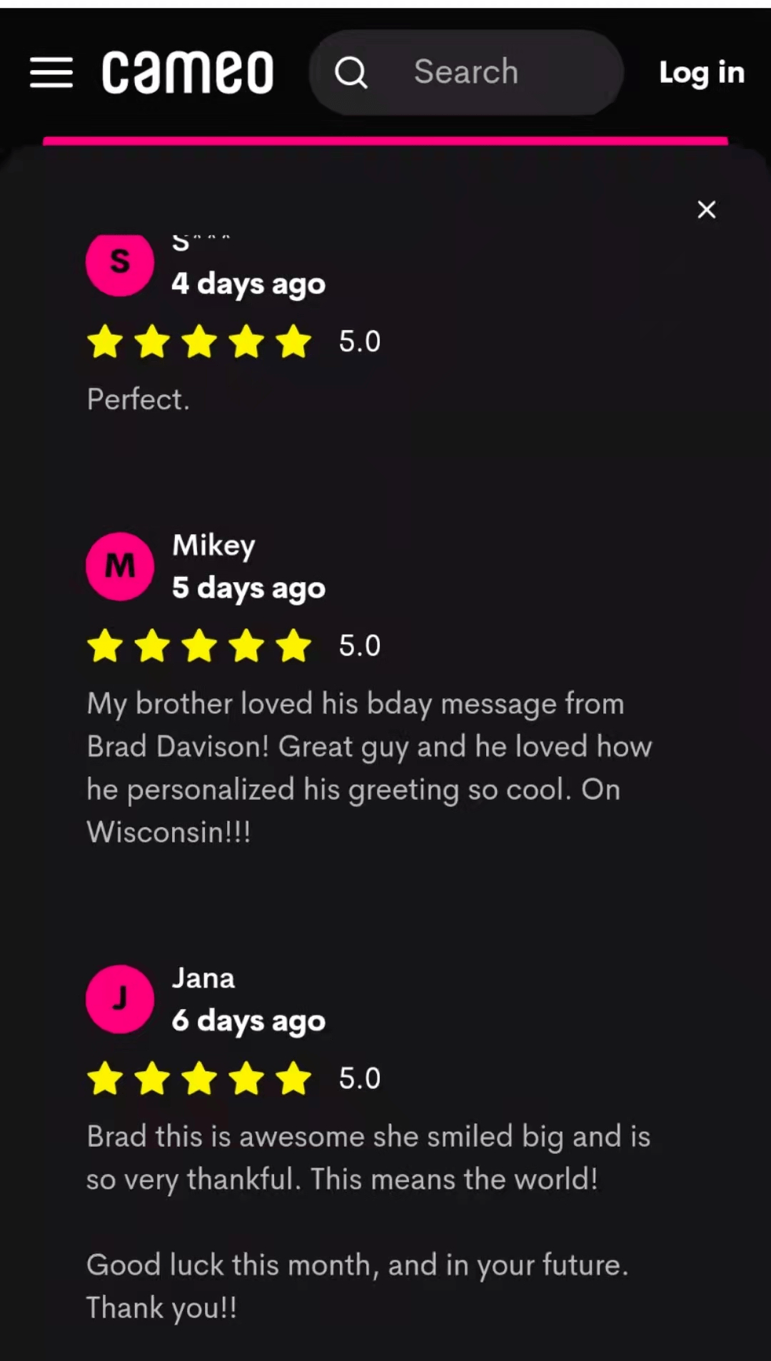 这条视频也很快带起了一波海外明星祝福潮。不少网友追本溯源,发现这些渠道都来自于海外一款名叫Cameo的App,主要业务就是明星祝福视频定制。用户在Cameo上面花5到3000美元不等,就可以获得演员、网红、运动员、创作者、真人秀明星等名人群体的定制化喊话短视频,包括各种场景的祝福。
