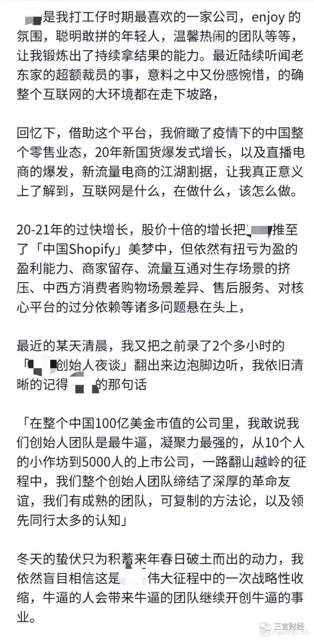三言财经认为,企业裁员,只要合法合规,本无可厚非。毕竟对于公司来说,首先要活下去,才能养活更多员工,才能尽更多责任。