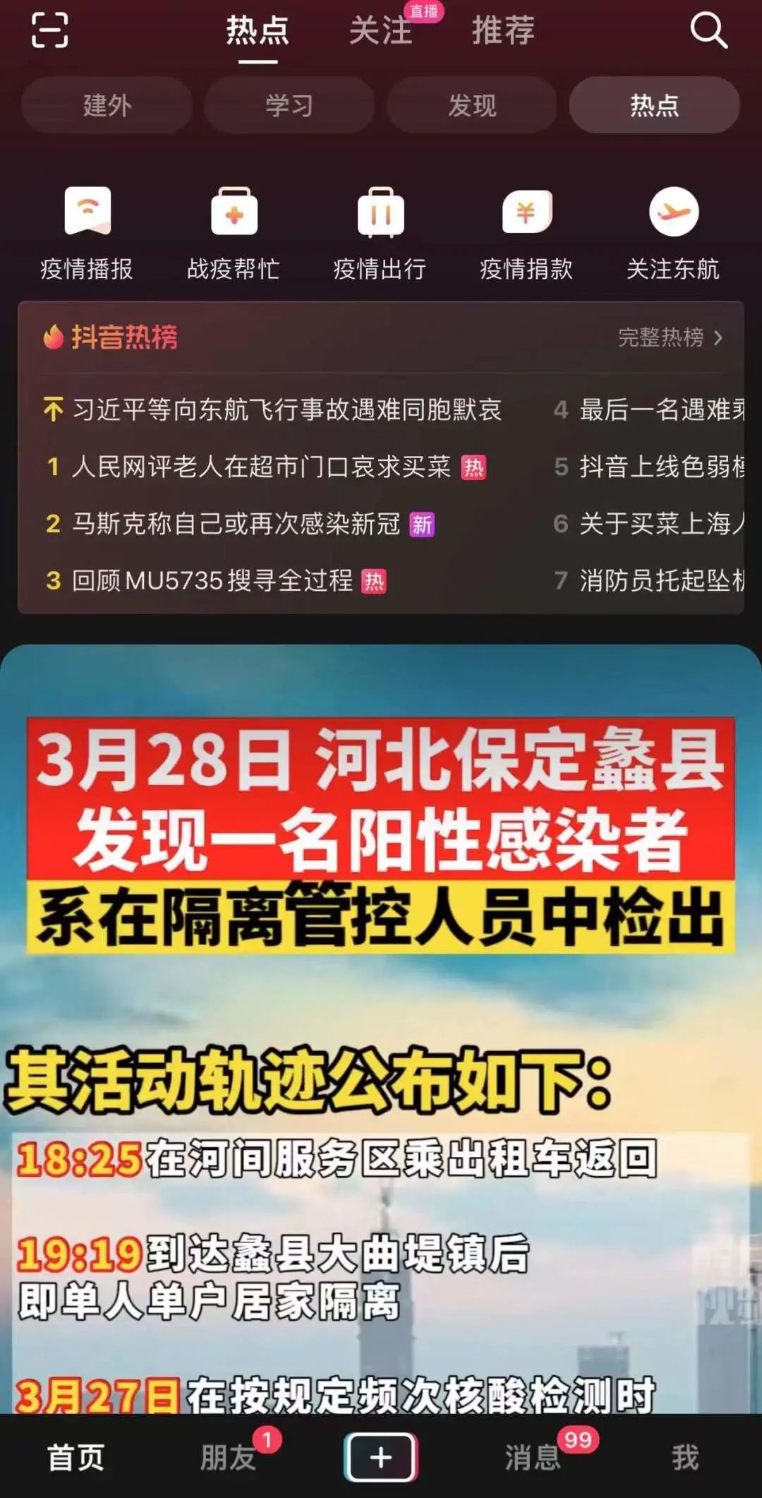 热点频道除了设有实时热点专题“关注东航”、“疫情播报”外,还增添了抖音非常重视的舆论场功能——抖音热榜。