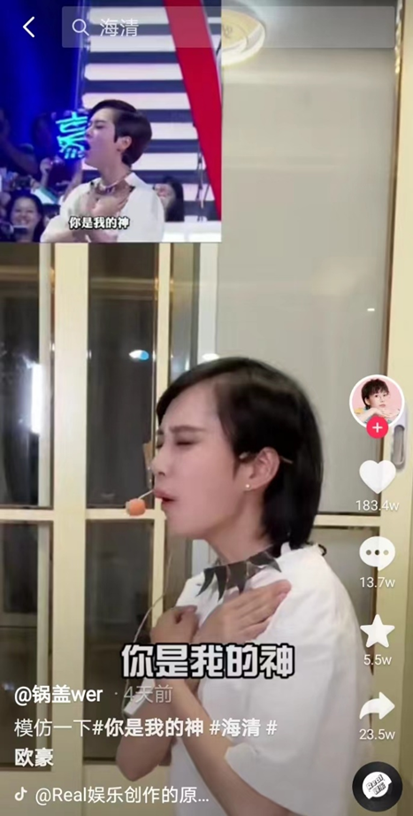 短短几天,带话题词你是我的神的相关视频,已经在抖音累计获得4.5亿次播放;B站的模仿赛同样火热,制造出若干百万播放的二创视频。