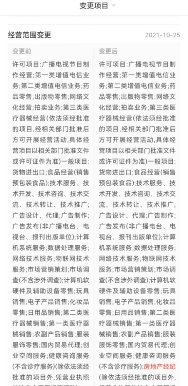 爱企查显示,2021年10月,快手的全资子公司成都快购科技有限公司增加了发生工商变更,经营范围新增房地产经纪。
