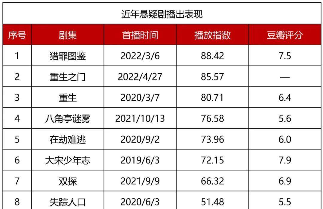 好在今年开年以来,《猎罪图鉴》和《重生之门》的相继火爆,让一度陷入低迷的原创再次燃起希望。其实,从2017年《白夜追凶》奠定了原创国产悬疑剧的商业价值后,国内市场在悬疑赛道一直没有停止对原创的探索。