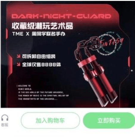 两场重映演唱会上,观众点击直播间右下角的“购物袋”,就可以进入TME live的官方品牌店铺选购周杰伦周边产品,当晚店铺共上线了12件商品,价格从59元到4999元不等。据每日经济新闻估测,当晚周边商品的收入转化额可能在千万以上。