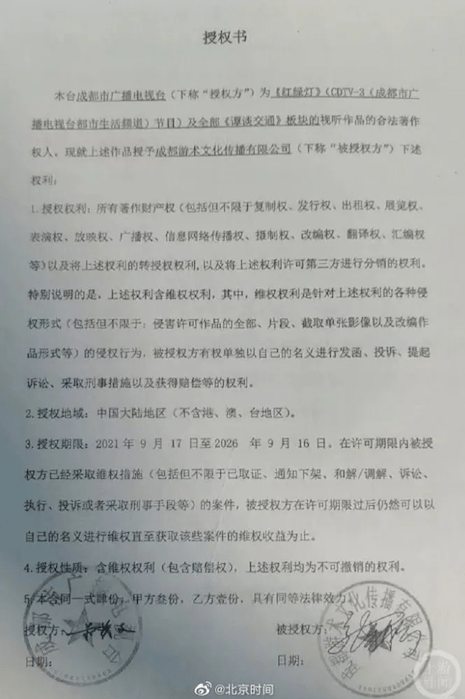 不过事情随着成都市广播电视台发布的一则授权书发生了转折。