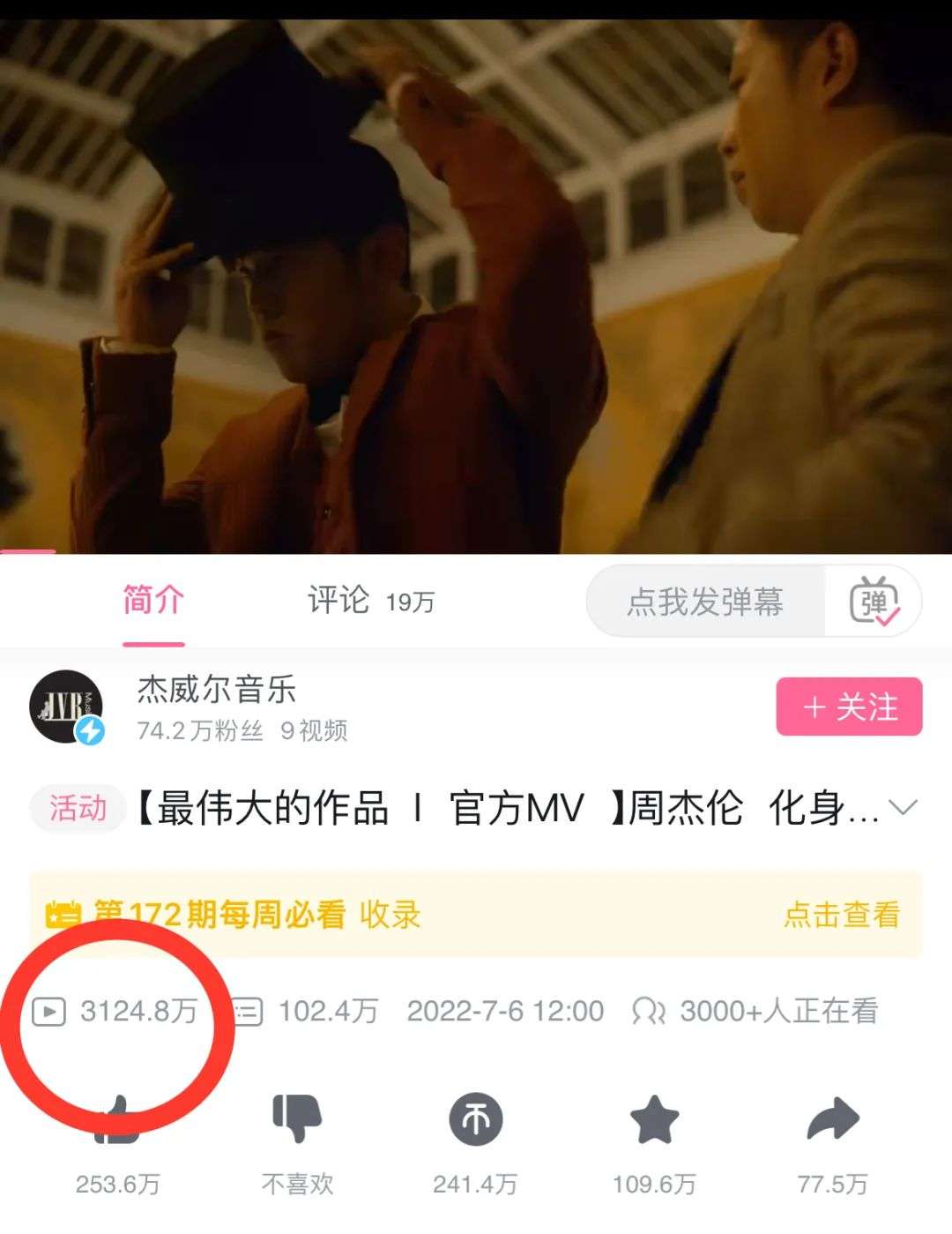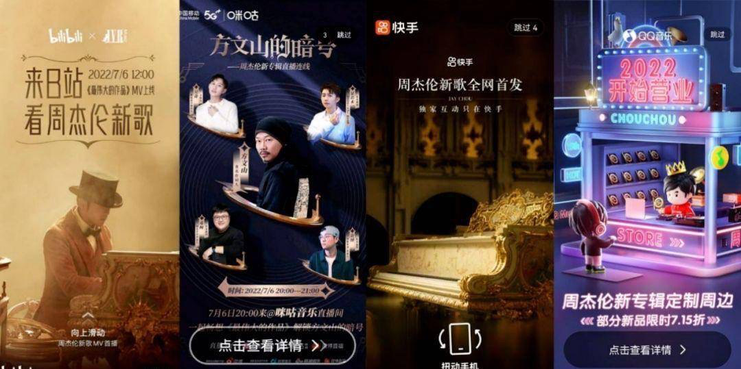 新专辑上线后,快手、抖音、B 站的首页都为新专辑 MV 留出了C位,B战在7月第一天就宣布获得了杰威尔音乐的授权,将在音乐板块上线周杰伦的单曲和《最伟大的作品》MV,目前该MV播放量已经超过2000万。同时,B站也率先上线了Hi-Res无损音质功能,并修复了4K版《稻香》、4K版《给我一首歌的时间》等MV,盘活了已有的周杰伦音乐资源。