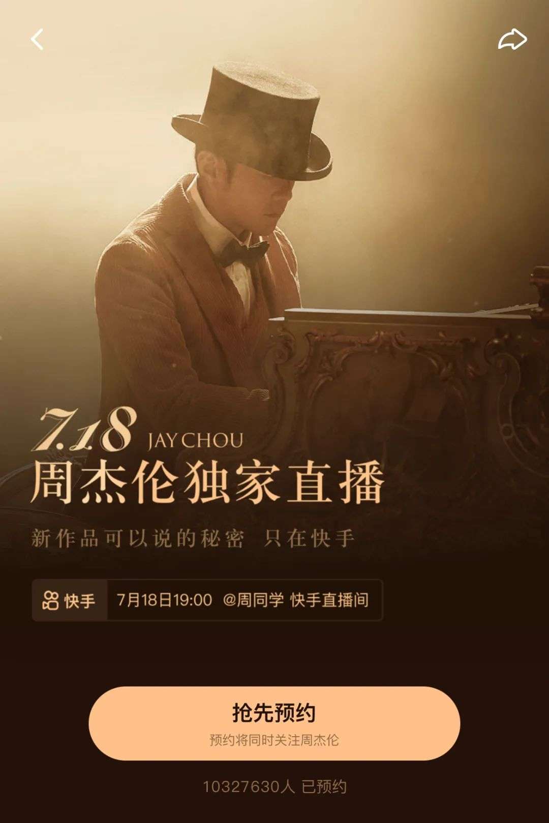 此后,周杰伦一直和快手一路长跑保持稳定合作的关系,目前,周杰伦的快手粉丝突破4063万。7月18日19时,周杰伦将在快手独家直播。届时,他将讲述“新作品可以说的秘密”,还将“批改”用户与其互动的视频“作业”。截止7月18日15时许,快手上预约周董直播人数已经超1032万,人气一路高涨。