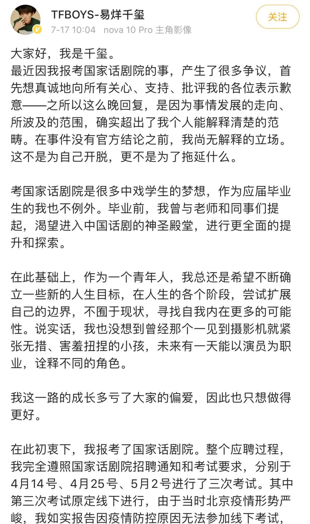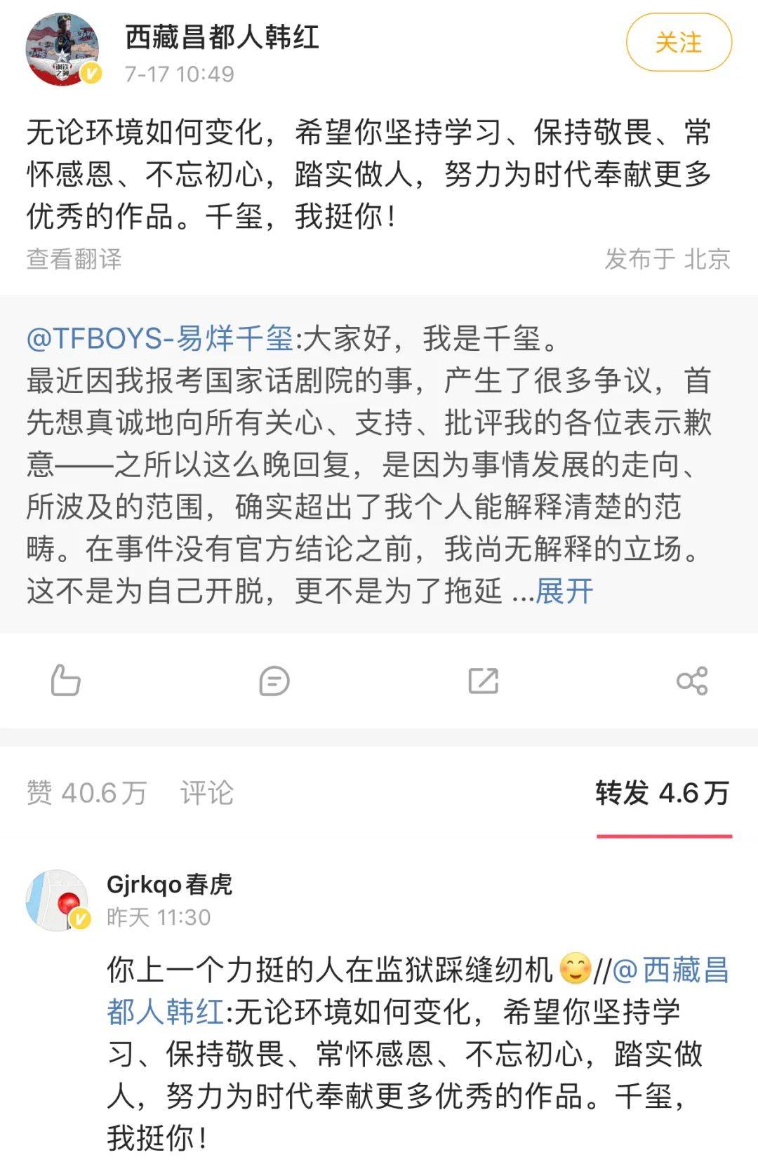 于正的热情参与,正式标志着易烊千玺考编事件进入“后真相时代”。