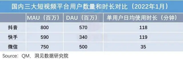 然而作为迭代的内容形式,视频号在最关键的地方是哑火的:单用户使用时长仅为35分钟,不到抖音和快手的三分之一。