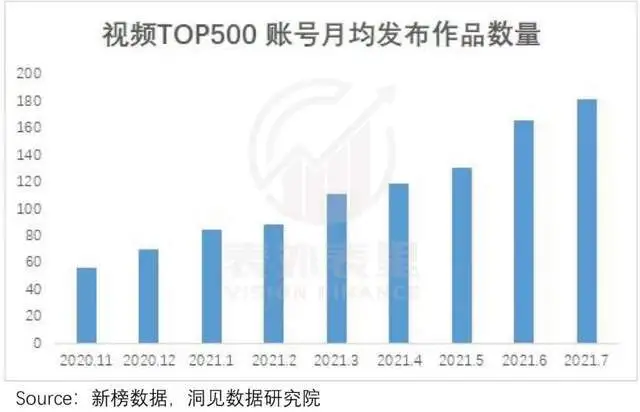 这显然不是事实。数据显示,2020年11月-2021年7月,视频号TOP500强的内容发布量,持续提升,用户对内容创作热情很大。