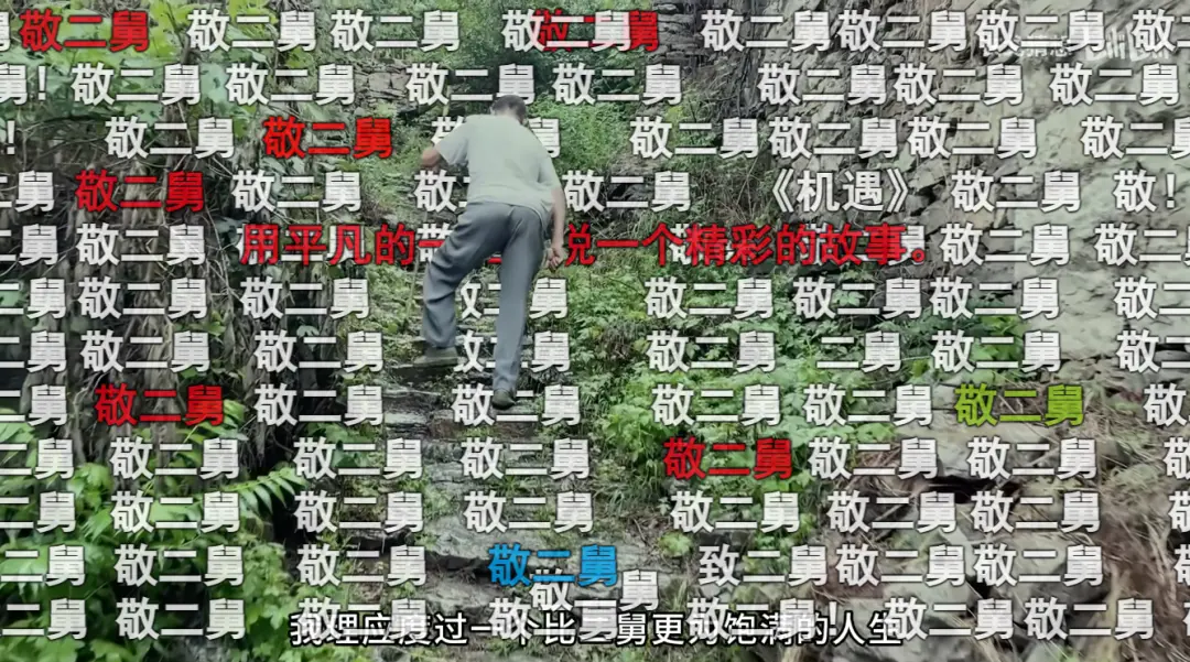 11分钟的视频播放到最后30秒,视频里拄着拐杖的老者蹒跚着向山上走去。伴随着背景音乐《Assassin's Tango》播放到最激情澎湃的鼓点,一排一排的弹幕密密麻麻地飘过:“敬二舅!”