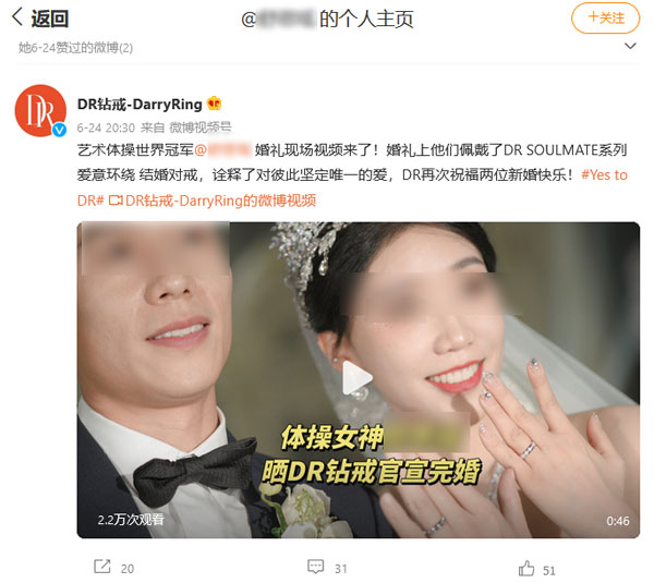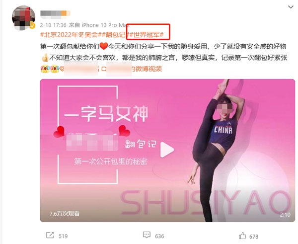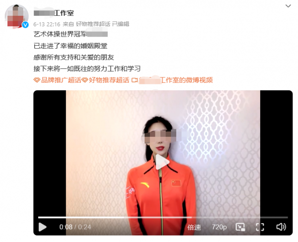 此外,这位前国家队队员曾于今年6月点赞了两则将其称为"艺术体操世界冠军"的商业合作内容。