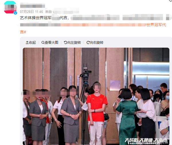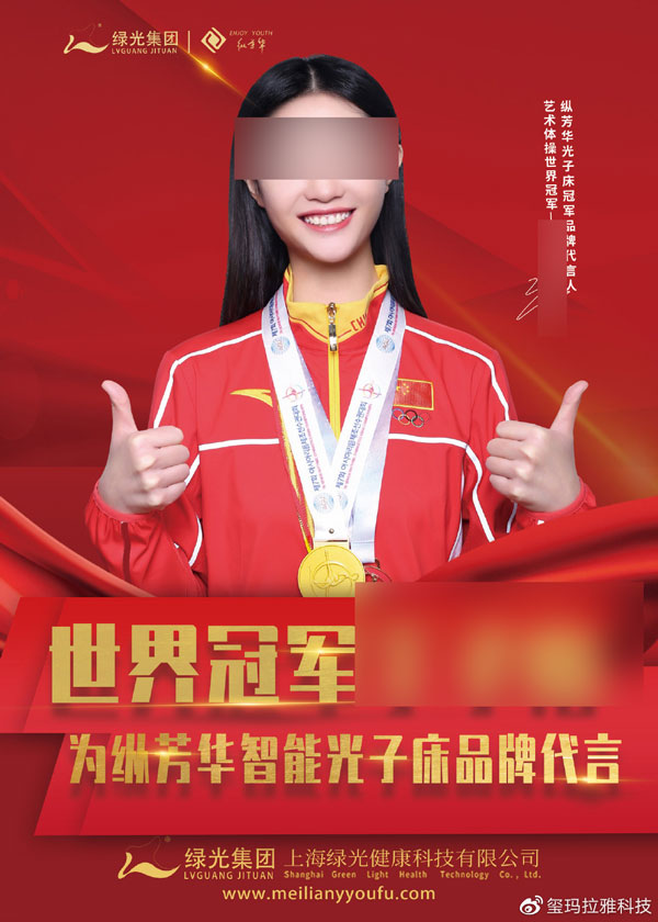 而连日来,这些面孔频繁出现在网上流传的所谓"艺术体操世界冠军"担任某品牌"形象大使"的广告图片中。