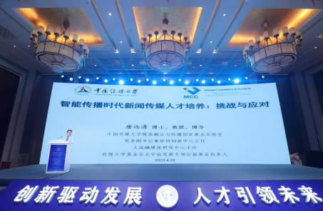 中国传媒大学媒体融合与传播国家重点实验室党委副书记兼协同创新中心主任唐远清发表主旨演讲