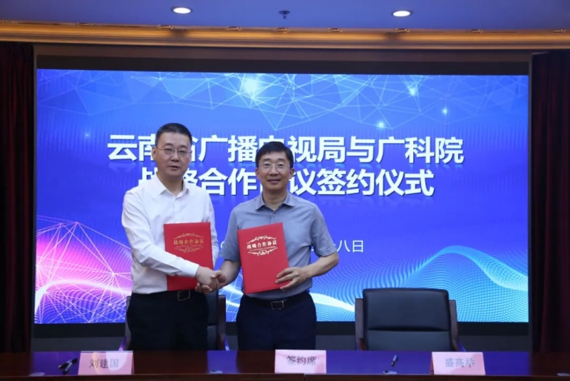 6月28日,云南省广播电视局与国家广播电视总局广播电视科学研究院在北京签订战略合作协议。云南省广播电视局党组书记、局长盛高举与国家广播电视总局广播电视科学研究院党委书记、院长刘建国代表双方签约。