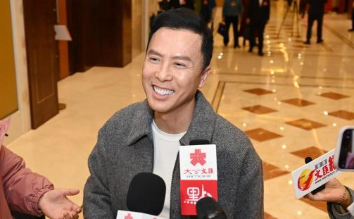 3月5日,全国政协十四届二次会议文艺界小组会议在北京举行。图为全国政协委员甄子丹接受记者采访。