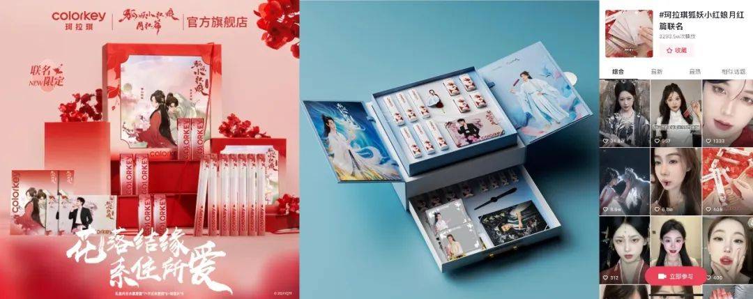 在今年上半年爆火的《狐妖小红娘月红篇》开播前,爱奇艺就洞察到《狐妖小红娘月红篇》中元素、妆造、场景、人物设定、多线CP故事等极强的IP商业化属性,并以此为主要卖点完成30+IP授权客户的招商,其中,《狐妖小红娘月红篇》还是馥碧诗、夸父炸串等品牌的首个合作IP。在涉及吃喝住行玩等日常生活及娱乐各场景的联名活动中,爱奇艺提取《狐妖小红娘月红篇》中最重要的妆容、狐妖等元素,为Colorkey、美赞臣、茶百道等多个品牌赋能。爱奇艺的预见式IP培养,让品牌能够提前入场、快速跟进,障品牌方最快赶上内容热度周期,让IP的内容和热度最大限度助力品牌的销量增长。