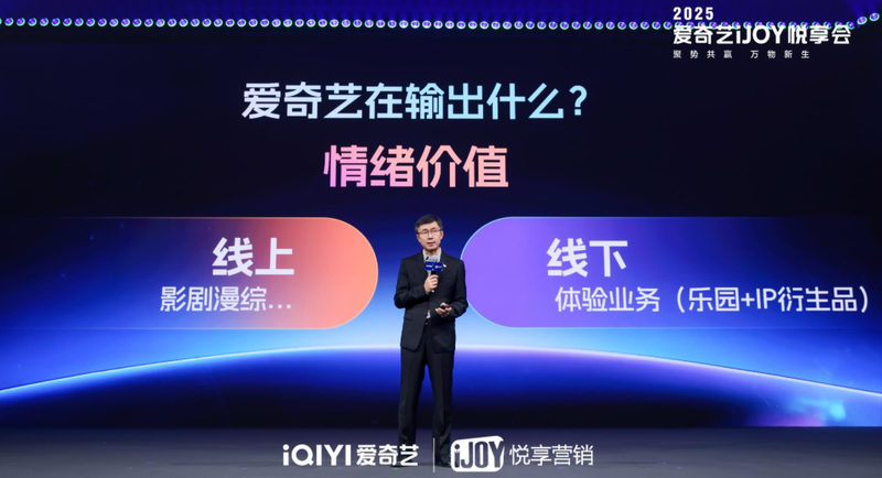 爱奇艺的logo更新去掉了意味着屏幕的部分,龚宇在会上强调——爱奇艺不仅是屏幕里观赏的一个视频,是娱乐公司,“爱奇艺输出的是情绪价值”。除了在线视频,线下业务成为其新的核心。