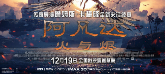 《阿凡达:火与烬》12月19日同步北美,在中国内地公映