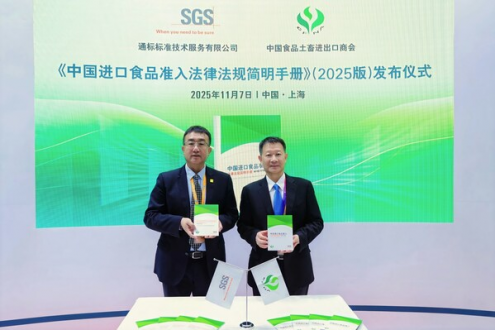 进博会期间,SGS与土畜商会联合编撰的2025版《中国进口食品准入法律法规简明手册》正式发布,发布仪式同期举行。