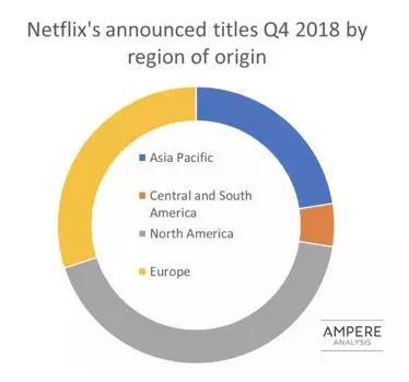 2018年第四季度的新剧总量,亚洲和欧洲总和,已经超过公司全部剧集的一半。