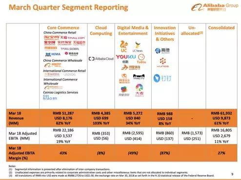 而整个阿里目前最大的增长点,则来自阿里云的76%增长率。虽然比前两年同期的103%增长率相比有所下降,但依然可以说是高速增长。