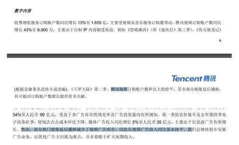 先看腾讯视频,这方面的表现数据在财报中归入“数字内容”版块。