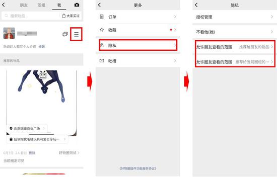 为了解决这一棘手问题,微信不仅下线了上述能力,还将“朋友圈”的权限查看等能力复制到“好物圈”中。在‘我-隐私’中,“好物圈”新增了“允许朋友查看的范围”、“允许圈友查看的范围”,并且默认范围为“推荐给朋友的物品”以及“推荐给当前圈组的物品”,目的就是避免隐私问题给“好物圈”带来的“潜在性灾难”。
