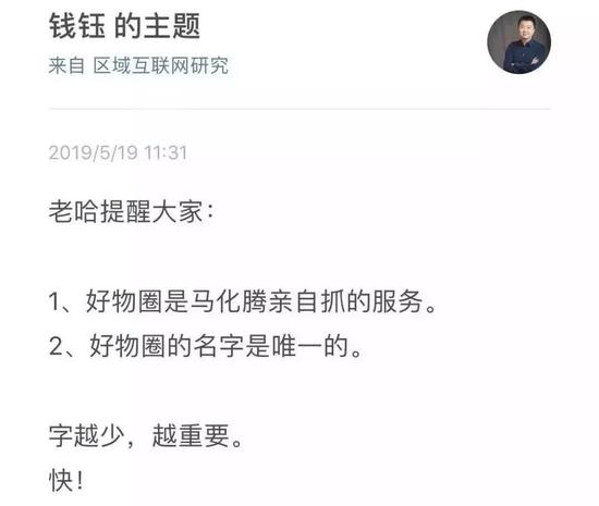 据化龙巷创始人@钱钰 透露,“好物圈”是马化腾亲自抓的服务,并且“好物圈”的名字是唯一的。这里所说的“名字”是指,好物圈上线的‘创建圈组’功能,每个用户可创建3个圈组,且圈组的名字具有唯一性。