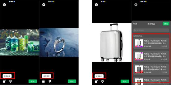 当用户上传好物图片后,系统会自动识别图片中商品,并在左下角的商品入口上方弹出“发现XX”的小窗提醒,用户点击进入后可以看到同类商品的多条推荐链接,较先前需要用户自己搜索商品添加链接,在体验上无疑更优。