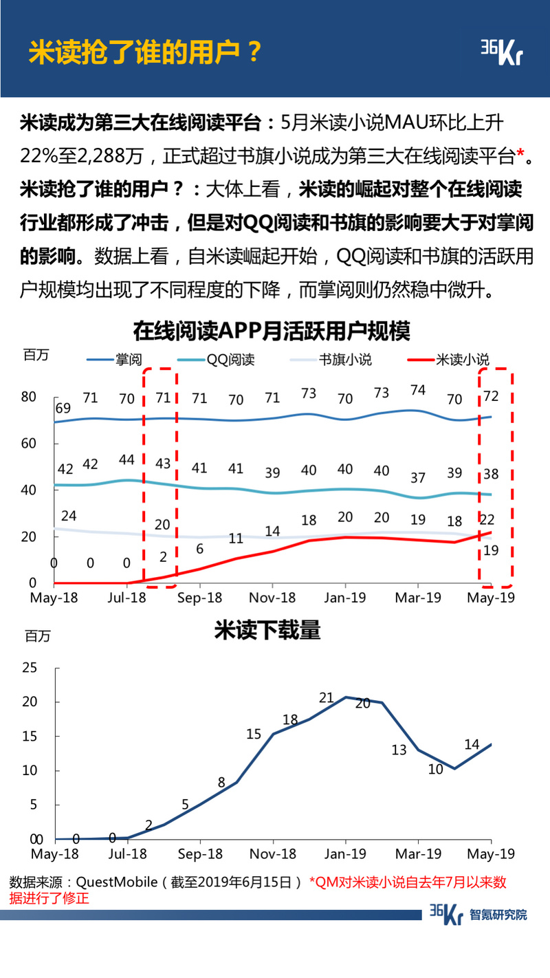 在线阅读方面,米读成为第三大在线阅读平台,其崛起对整个在线阅读行业都形成了冲击,但是对QQ阅读和书旗的影响要大于掌阅。